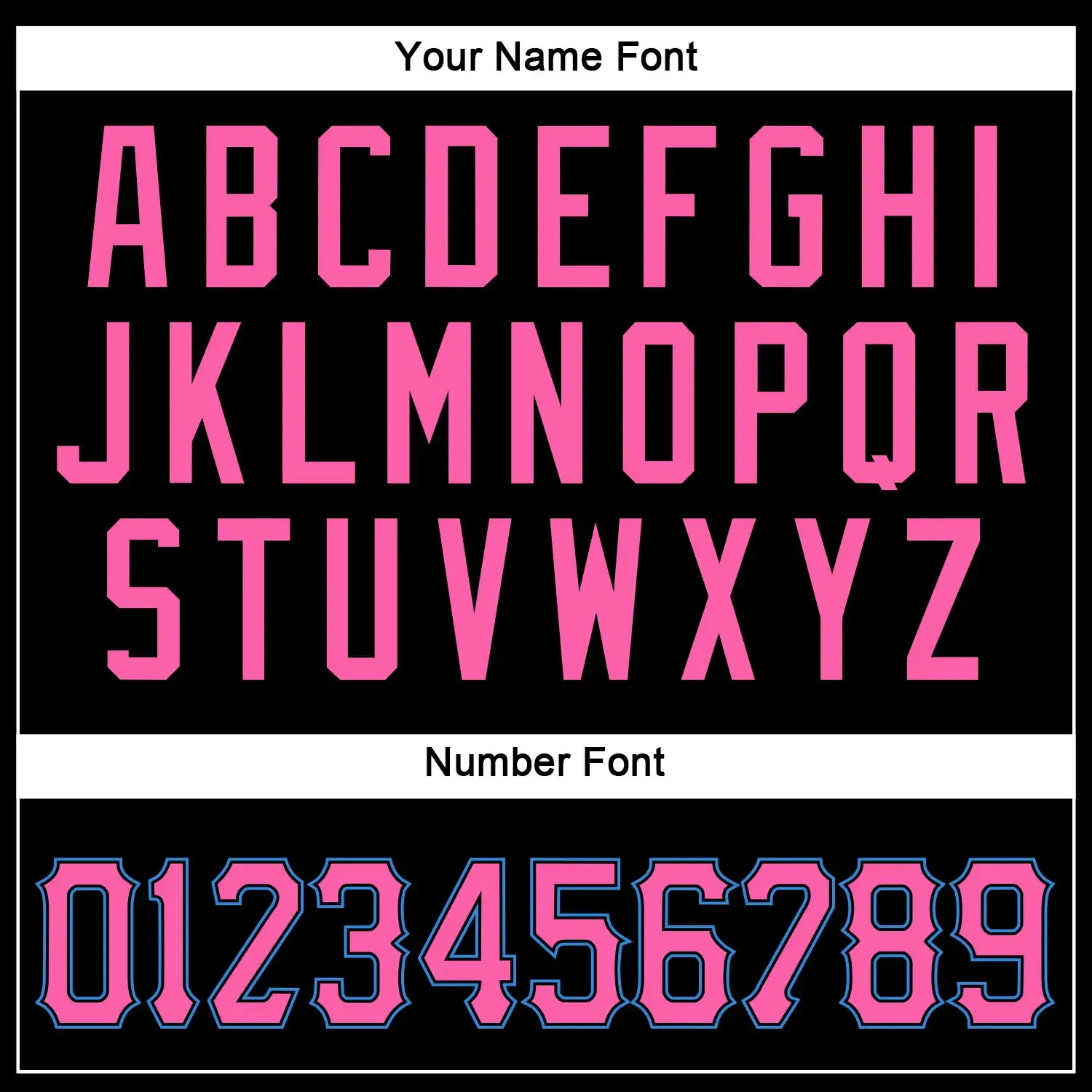CustomizedGuys provides this Custom Black Mesh Throwback Football Jersey with Pink-Powder Blue. You can customize this football uniform with the team logo, name and number of your own name. This custom football jersey is the closest to what the pros wear featuring twill numbers. We want fans to make a vibrant look on the field or daily life by personalizing football jerseys.