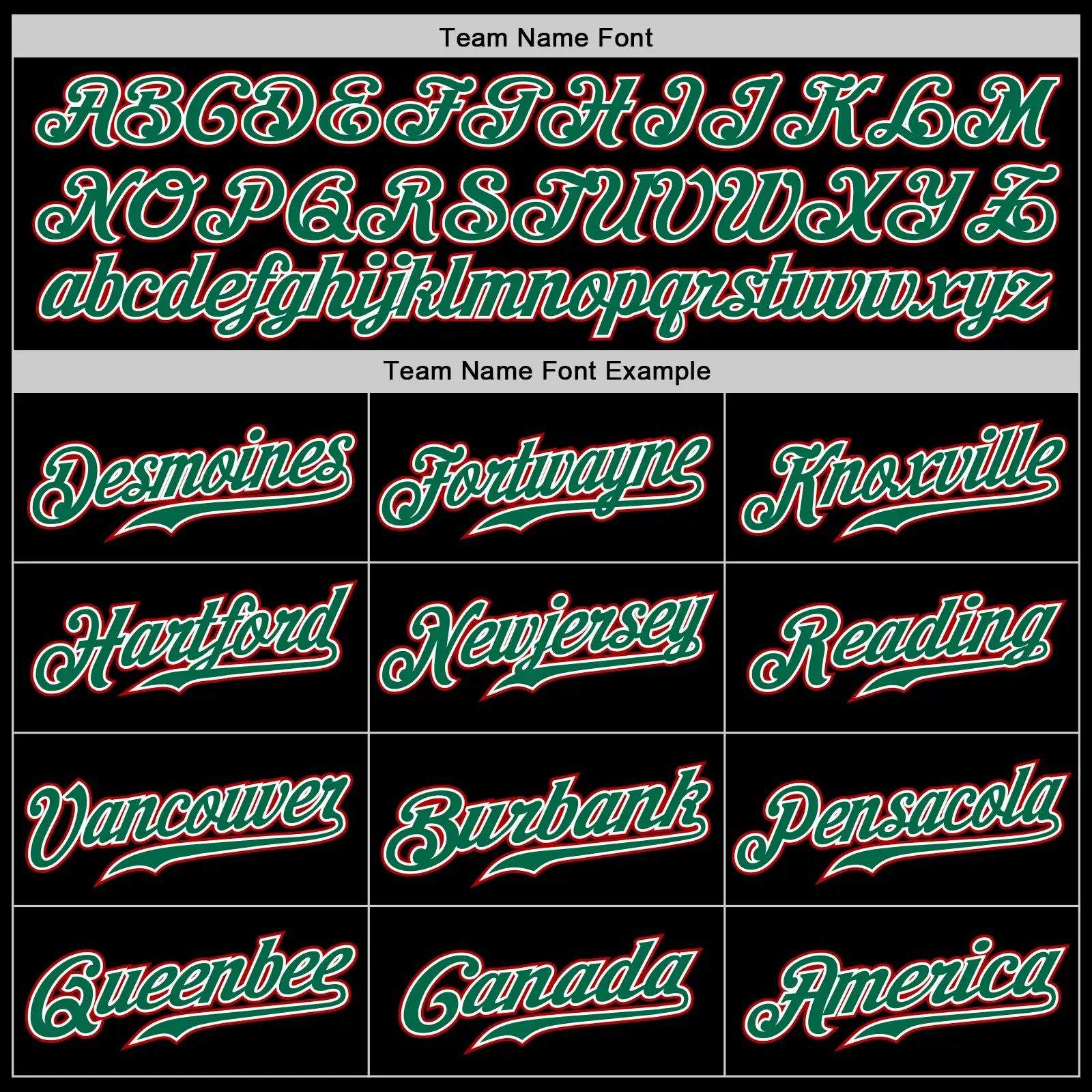 CustomizedGuys provides this Custom Black Kelly Green Pinstripe Baseball Jersey with Kelly Green-Red. You can customize this baseball uniform with the team logo, name and number of your own name. This custom baseball jersey is the close to what the pros wear featuring twill numbers. We want fans to make a vibrant look on the field or daily life by personalizing baseball jerseys.