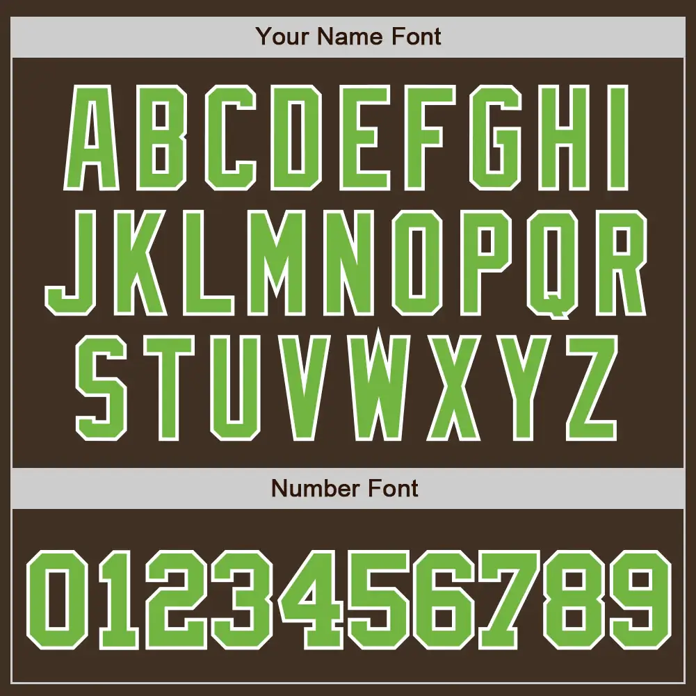 CustomizedGuys provides this Custom Brown Baseball Jersey with Neon Green-White. You can customize this baseball uniform with the team logo, name and number of your own name. This custom baseball jersey is the close to what the pros wear featuring twill numbers. We want fans to make a vibrant look on the field or daily life by personalizing baseball jerseys.