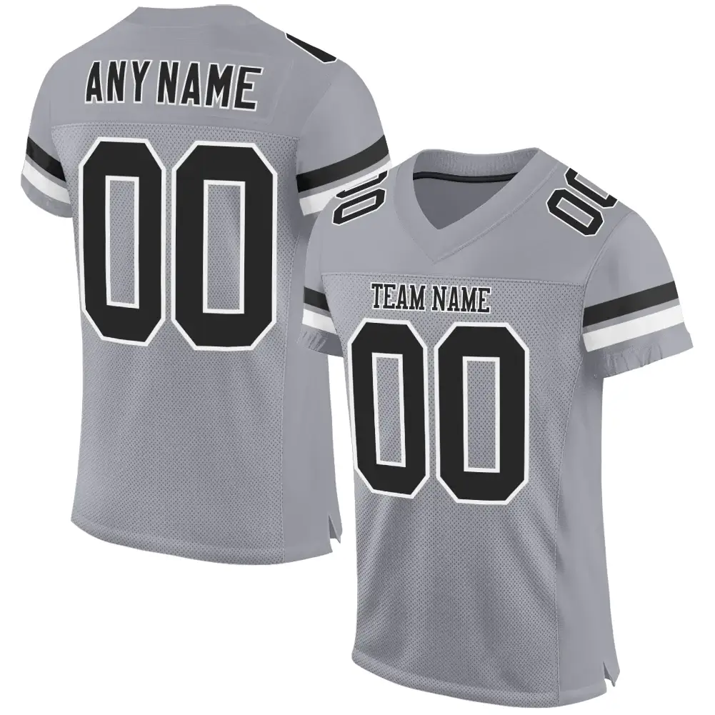 CustomizedGuys provides this Custom Light Gray Mesh Football Jersey with Black-White. You can customize this football uniform with the team logo, name and number of your own name. This custom football jersey is the closest to what the pros wear featuring twill numbers. We want fans to make a vibrant look on the field or daily life by personalizing football jerseys.