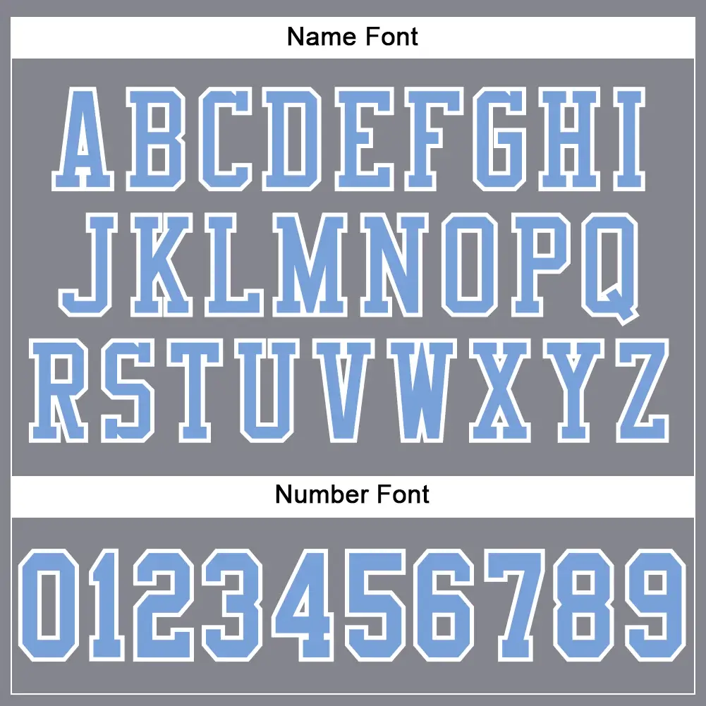 CustomizedGuys provides this Custom Light Gray Mesh Football Jersey with Light Blue-White. You can customize this football uniform with the team logo, name and number of your own name. This custom football jersey is the closest to what the pros wear featuring twill numbers. We want fans to make a vibrant look on the field or daily life by personalizing football jerseys.