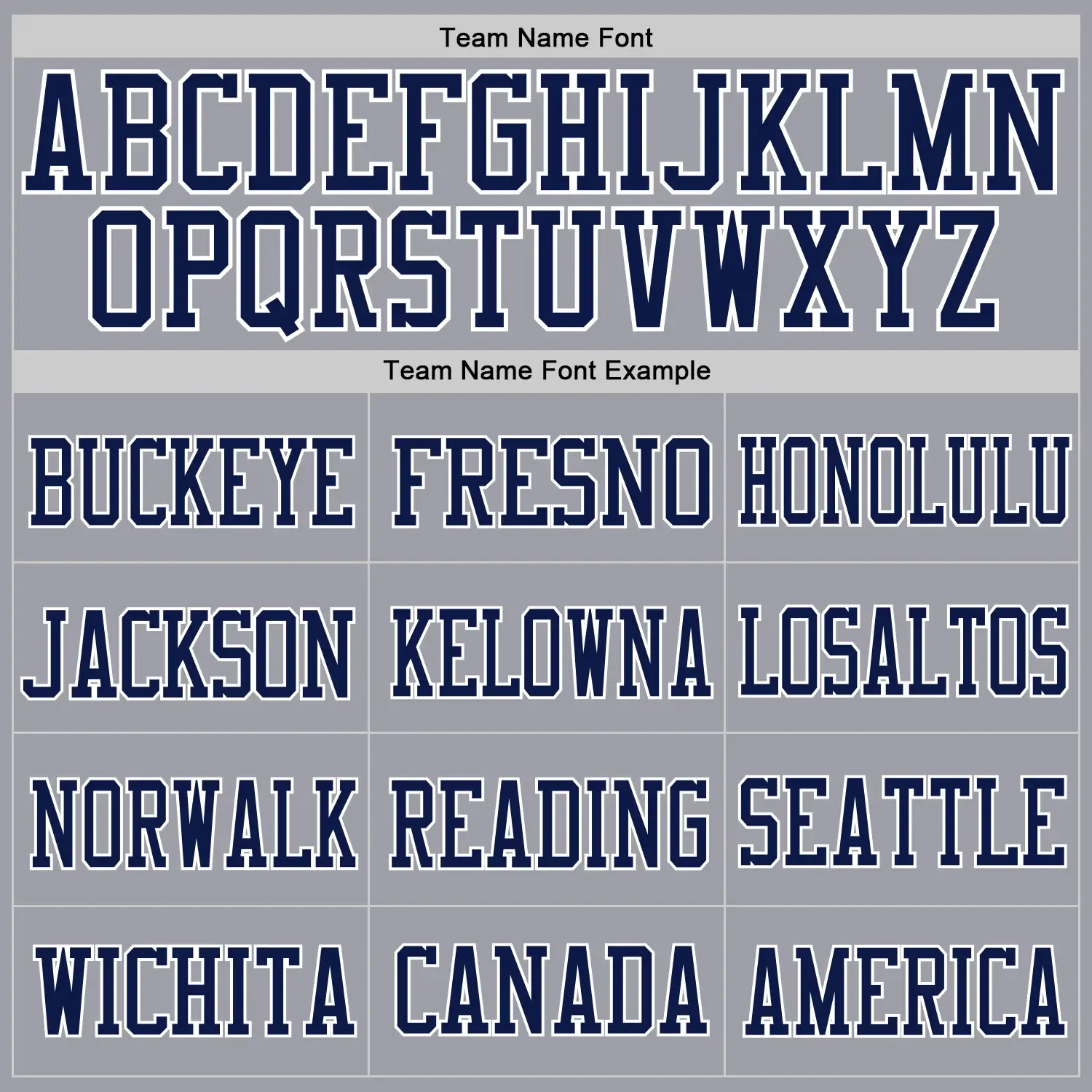CustomizedGuys provides this Custom Light Gray Mesh Football Jersey with Navy-White. You can customize this football uniform with the team logo, name and number of your own name. This custom football jersey is the closest to what the pros wear featuring twill numbers. We want fans to make a vibrant look on the field or daily life by personalizing football jerseys.
