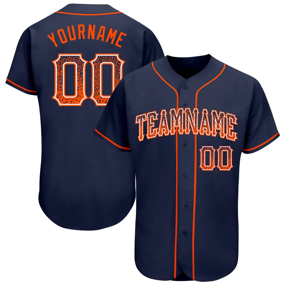 CustomizedGuys provides this Custom Navy Drift Fashion Baseball Jersey with Orange-White. You can customize this baseball uniform with the team logo, name and number of your own name. This custom baseball jersey is the close to what the pros wear featuring twill numbers. We want fans to make a vibrant look on the field or daily life by personalizing baseball jerseys.