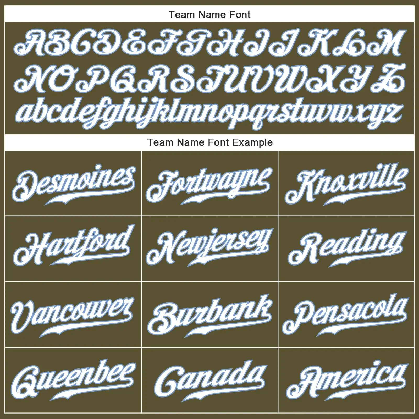 CustomizedGuys provides this Custom Olive Baseball Jersey with White-Light Blue. You can customize this baseball uniform with the team logo, name and number of your own name. This custom baseball jersey is the close to what the pros wear featuring twill numbers. We want fans to make a vibrant look on the field or daily life by personalizing baseball jerseys.