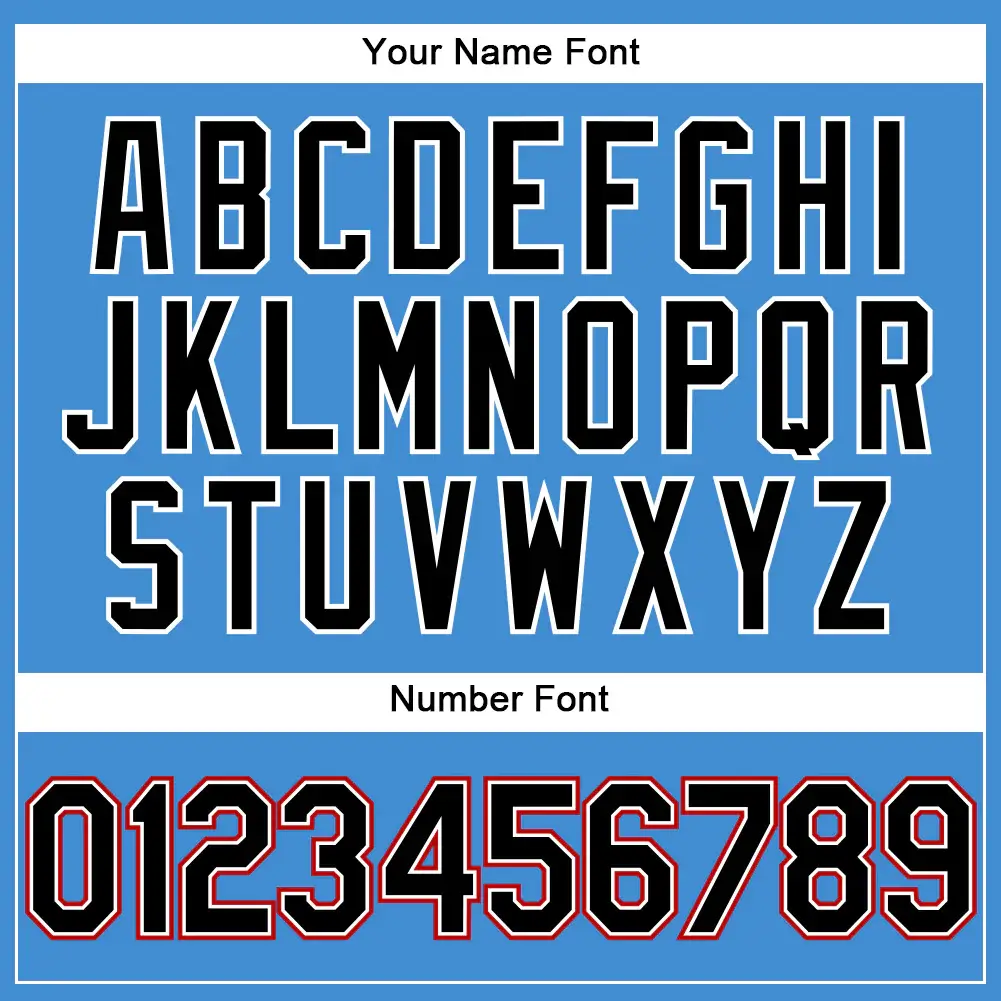 CustomizedGuys provides this Custom Powder Blue Red Pinstripe Baseball Jersey with Black-White. You can customize this baseball uniform with the team logo, name and number of your own name. This custom baseball jersey is the close to what the pros wear featuring twill numbers. We want fans to make a vibrant look on the field or daily life by personalizing baseball jerseys.