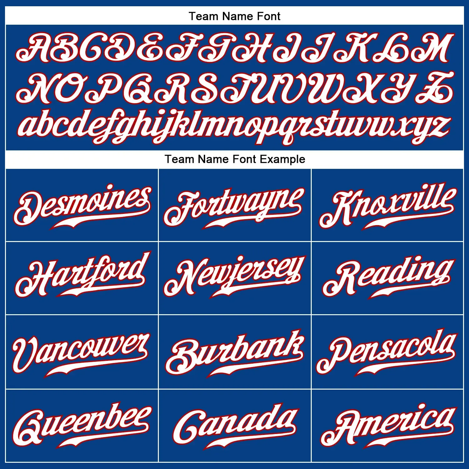 CustomizedGuys provides this Custom Royal Baseball Jersey with White-Red. You can customize this baseball uniform with the team logo, name and number of your own name. This custom baseball jersey is the close to what the pros wear featuring twill numbers. We want fans to make a vibrant look on the field or daily life by personalizing baseball jerseys.