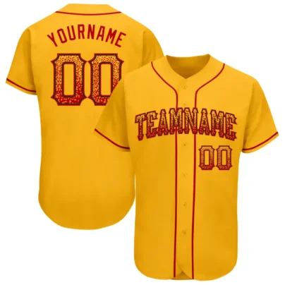 Custom Gold Drift Fashion Baseball Jersey with Red-Black