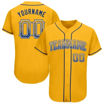 Custom Gold Drift Fashion Baseball Jersey with Navy-Light Blue