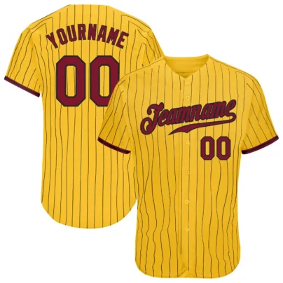 Custom Gold Pinstripe Baseball Jersey with Crimson-Black