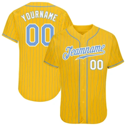 Custom Gold Pinstripe Baseball Jersey with Light Blue-White