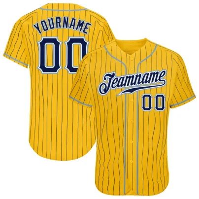 Custom Gold Pinstripe Baseball Jersey with Navy-Light Blue