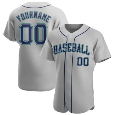Custom Gray Baseball Jersey with Navy-White