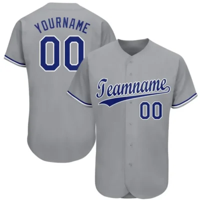 Custom Gray Baseball Jersey with Royal