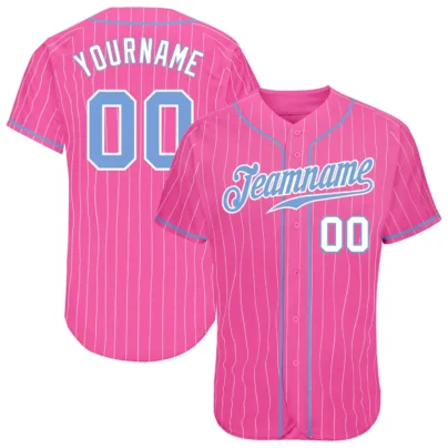 Custom Pink Pinstripe Baseball Jersey with Light Blue-White